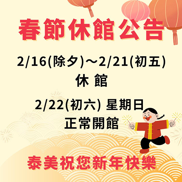 🏮 泰美春節休館公告 🏮