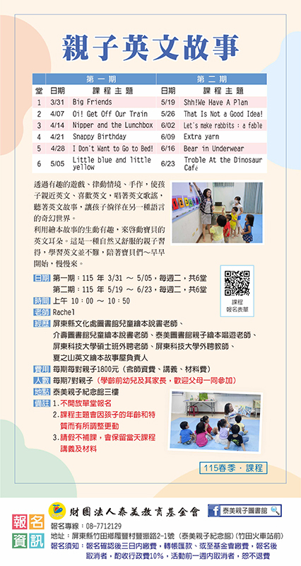泰美春季課程【親子英文故事】,歡迎大家踴躍報名參加!!